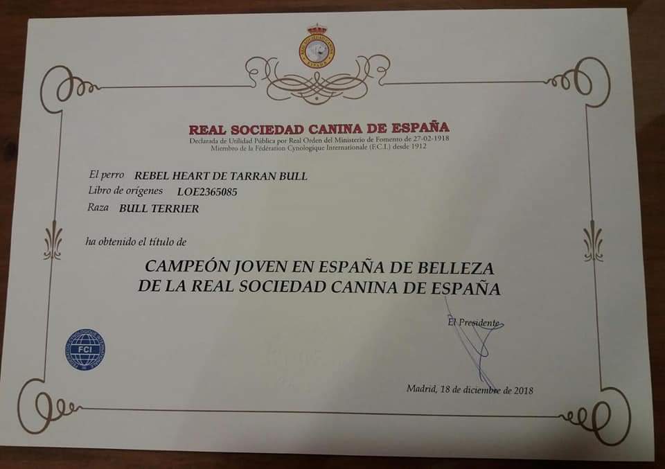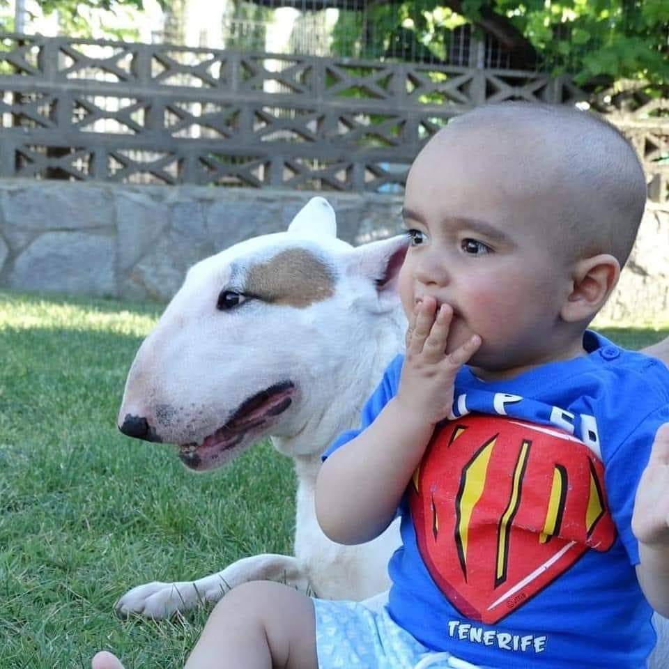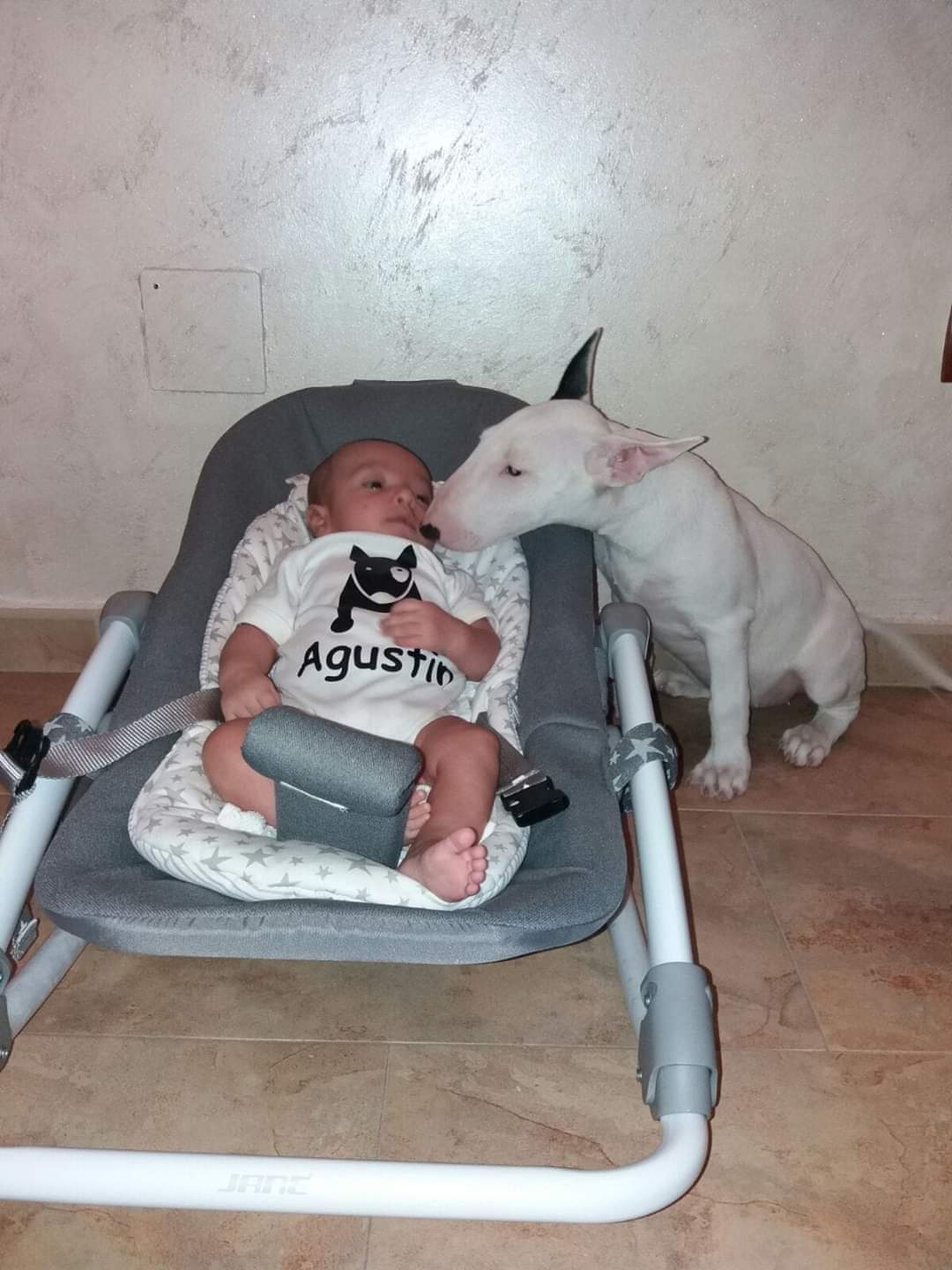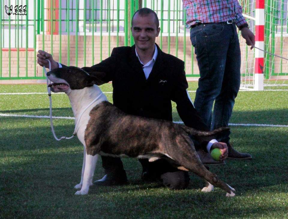 Esta raza llevo años amándola y cuando digo años son años… Sería el año 2001 cuando estaba viendo el programa «Impacto TV» y salió como un perro que se tiraba al ruedo a defender a su dueño, no había visto nunca un perro igual ni de similares características, por lo que me puse a mirar y a informarme de la raza (por aquel entonces quería un perro de compañía). Pregunte a muchos criadores y gente conocida de la época, pero se me escaba de precio, y cuando llegaba a casa y decía lo que costaba se reían y decían que estaba loco… Pero bueno poco a poco fui ahorrando y al cabo de un tiempo llegó DUNA, no era una perra de pedigree ni de un gran criador, pero era lo podía tener en esa época en casa… Cuando llego fue el «hazmerreir», mi padre decía que me habían engañado y me habían dado un perro con hocico de cepillo, jejeje, pero yo estaba muy contento y en realidad fue ella la que me enseñó a querer y apreciar esta raza llamada «BULL TERRIER».